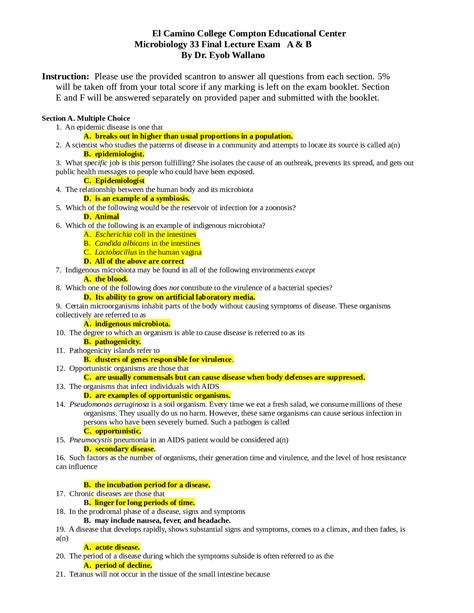 Online PDF MICROBIOLOGY FINAL EXAM WITH ANSWERS Reader Internet Archive